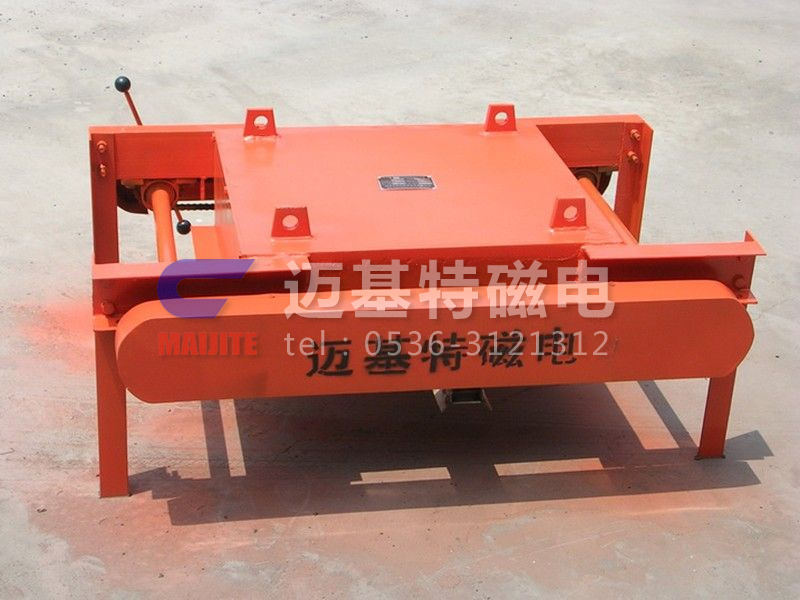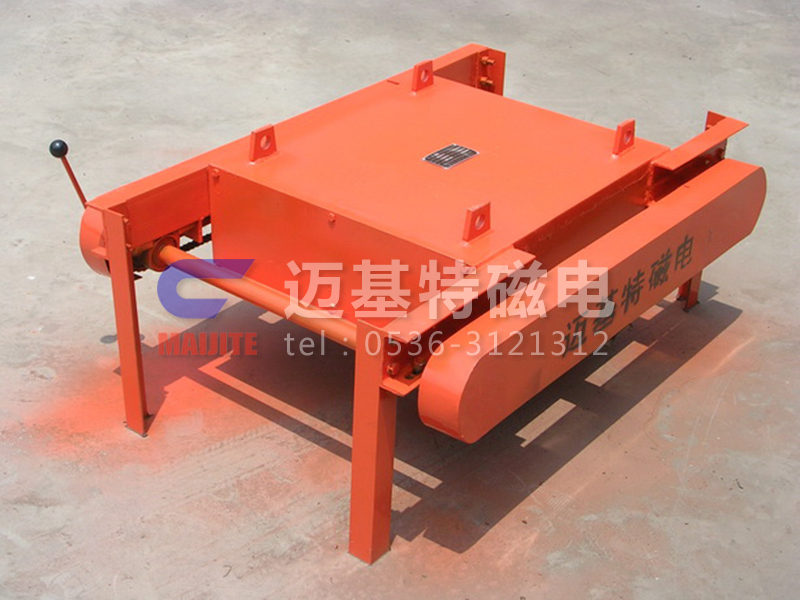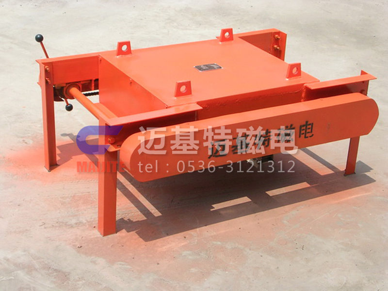 RCYP系列手動缷鐵式永磁除鐵器是采用高性能強磁材料作勵磁的永磁除鐵器基礎上增添了鏈條、刮板、 手柄等缷鐵裝置,通過手搖作動力帶動鏈條上刮板將吸附在除鐵器上的鐵磁性物質(zhì)刮出,這樣省去了人工用手清理鐵塊的麻煩。產(chǎn)品具有磁場強、吸力大、無需電能、安裝使用方便等特點。